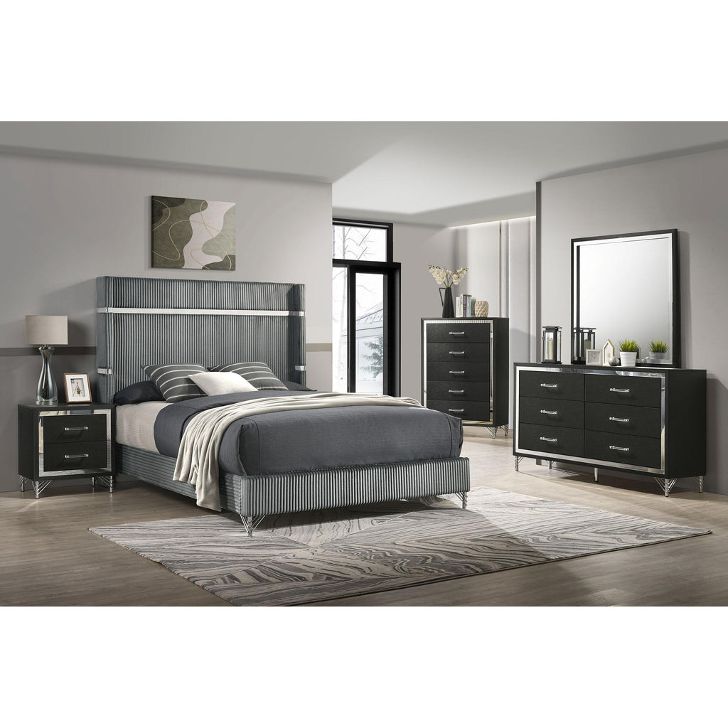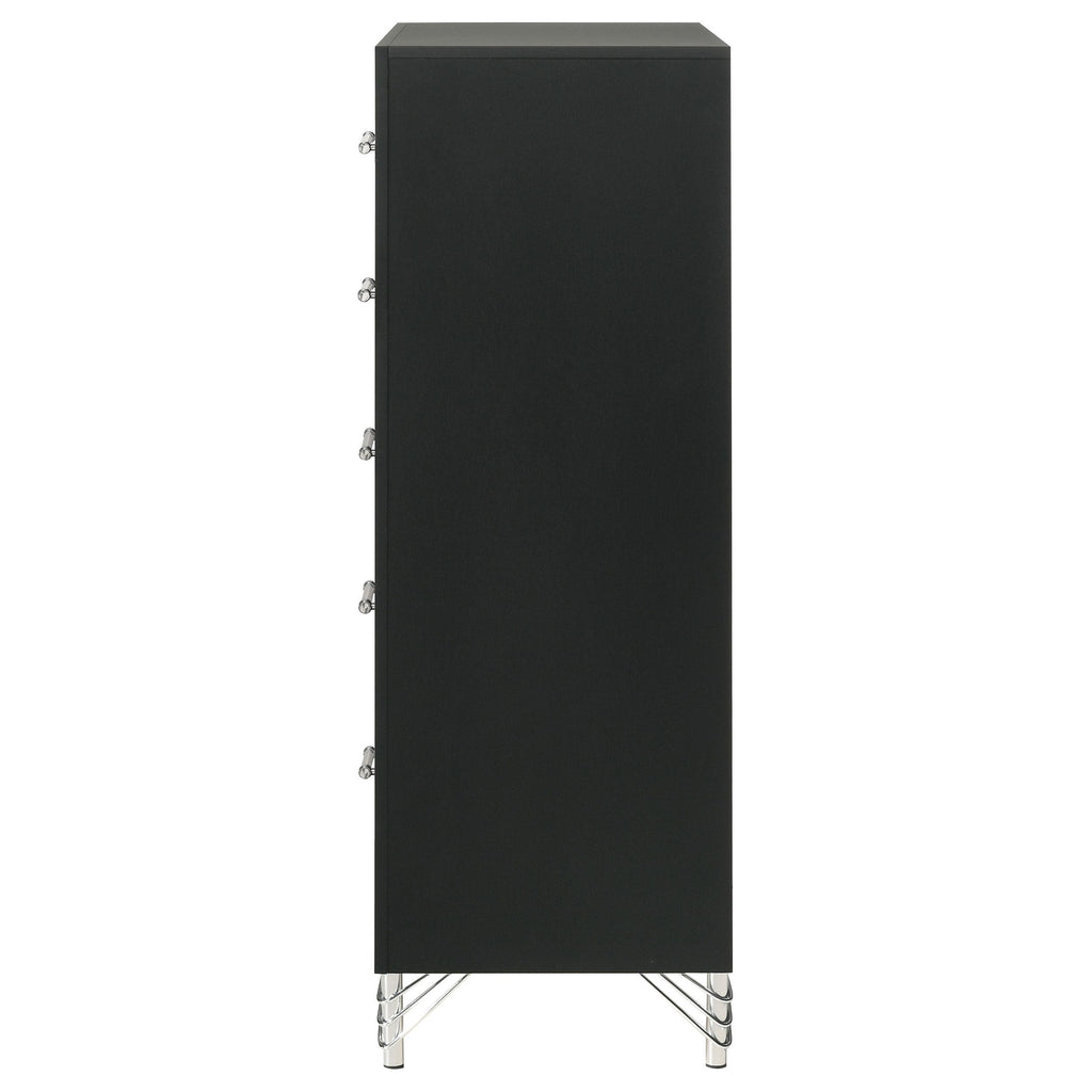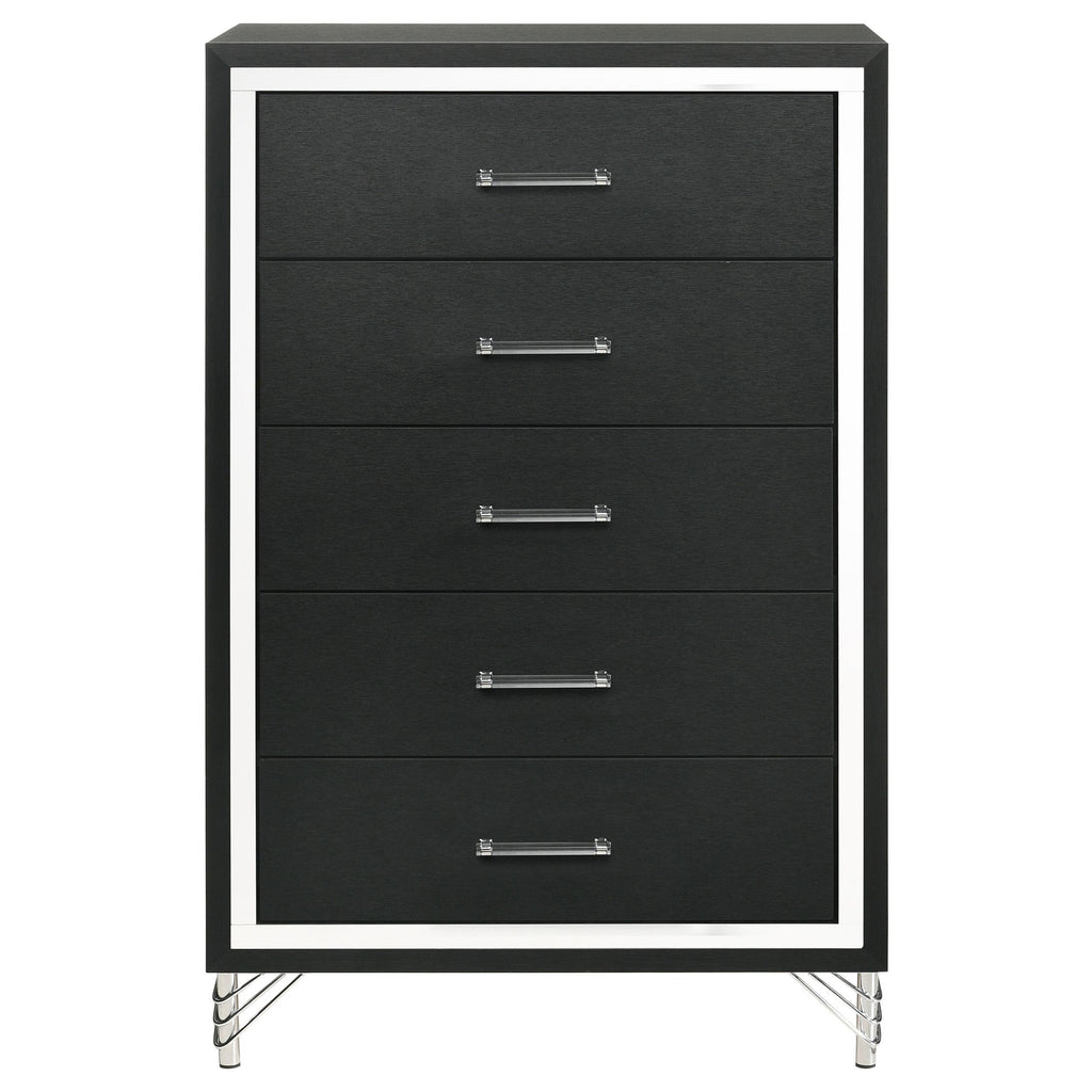 • Chic touches bring glamour and elegant flair to a modern five-drawer chest