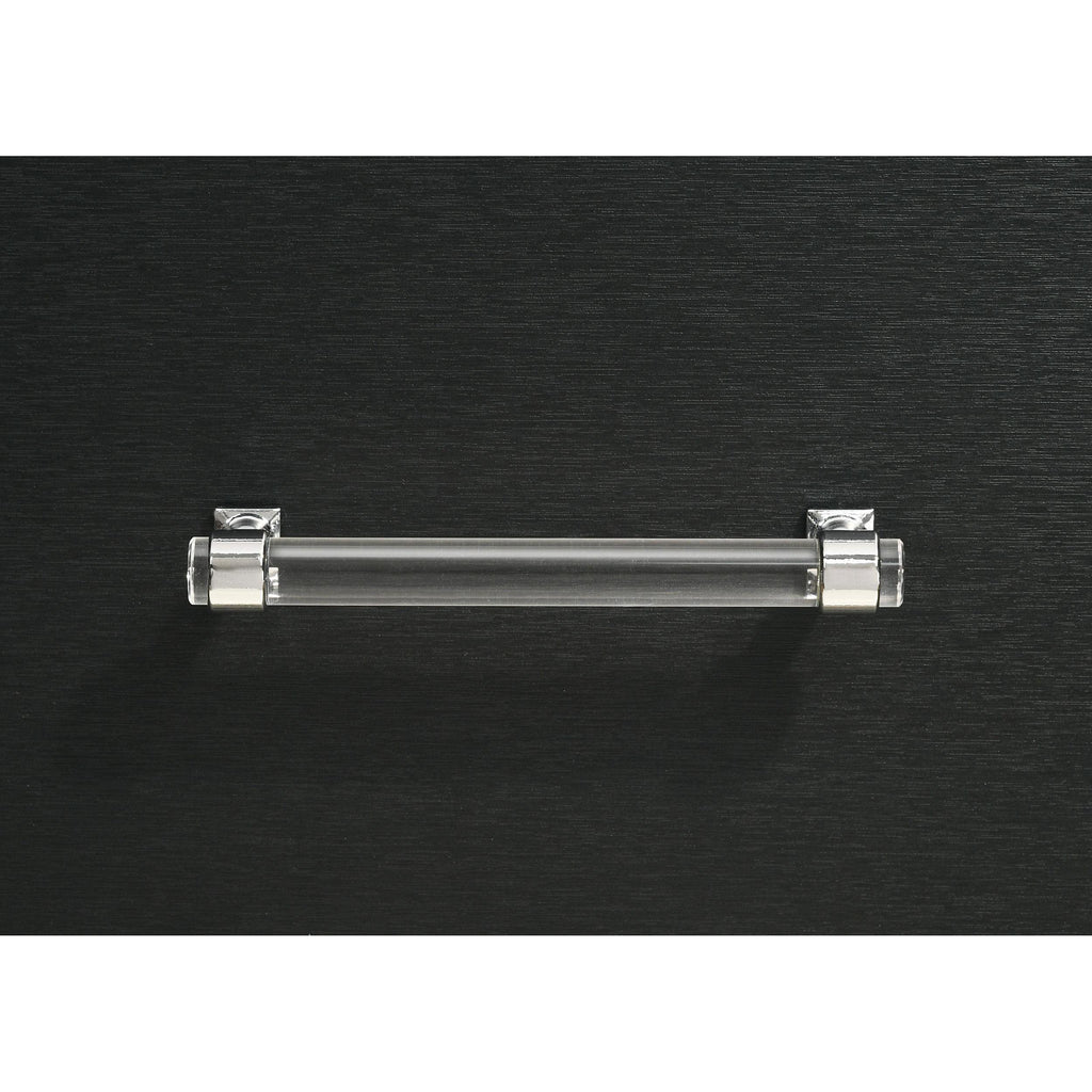 • Cool gleaming chrome finish trim highlights the front of the case, long bar pulls and decorative legs