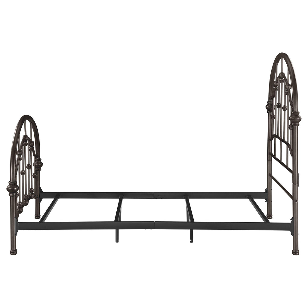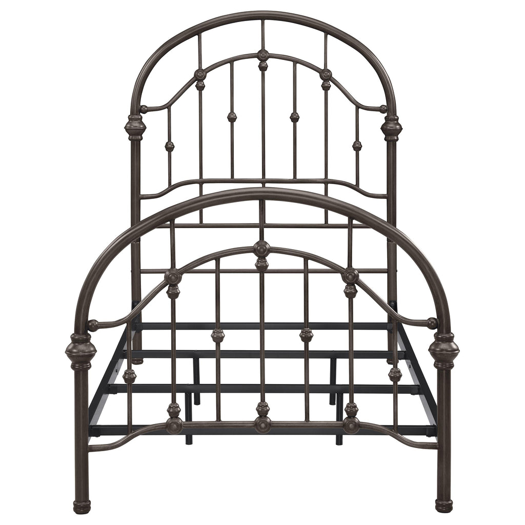 • Twin metal bed frame with arched headboard and footboard design