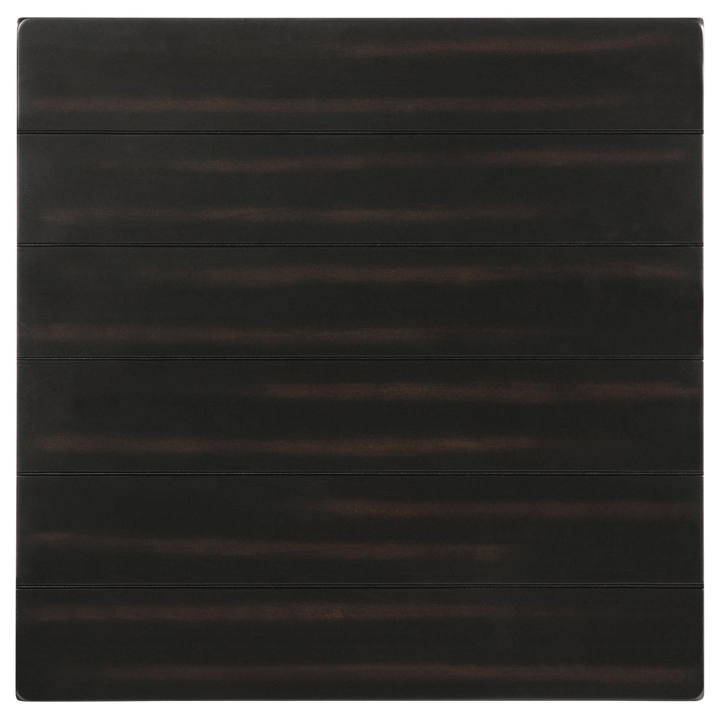 • Distressed java finish enhances its worn appeal, creating a hint of farmhouse flair in your layout